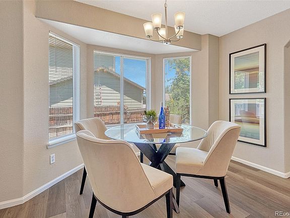 This great 2 story home in the Summer Breeze community is newly updated and move in ready. Offering nearly 2,400 fully finished square feet and an additional 1,000 as unfinished basement square footage, the first impression inside says it all. Soaring ceilings and a multitude of windows make the formal living space feel so inviting and grand. Nearly all main level ceilings have been newly textured and painted. Newer flooring, freshly painted accents, and new lighting create a fully updated feel. You'll discover a large updated kitchen with bar top, granite countertops, generous countertop and cabinet spaces, and an eat in seating area. The formal dining space has new lighting and is a truly elegant space- perfect for hosting all your loved ones. The kitchen also connects to another large living area leading put to a large deck just perfect for a summer BBQ. Or relax on the front patio. The primary bedroom has pitched ceilings with new texture and paint. The primary bathroom is complete with plank flooring, oval garden style tub, double sink vanity with granite countertops, updated LED lighting and adjoining walk in closet. You'll also discover another full bathroom on the upper level in addition to 3 more bedrooms. The corner lot and fully fenced yard offers room to run and the oversized 3 bay garage has room for any project or storing all your gear and favorite toys. New furnace and A/C installed in 2022. New roof November 2023. This home is conveniently located nearby grocery, restaurants, shopping, entertainment and much more. Also nearby playground, park, and access to miles of trails and Cherry creek schools.