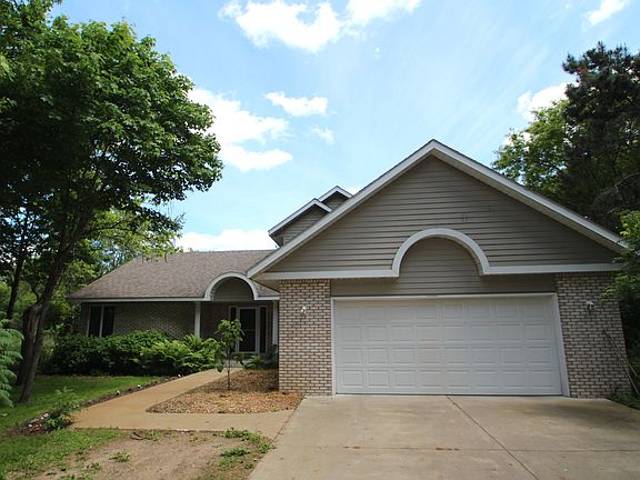 This wonderful custom-built one and a half story home sits on 2.66 Acres of a nature-lovers paradise right in town. It offers a main floor master suite with private bath featuring dual vanities and jetted tub and a large walk-in-closet. The spacious kitchen has granite counter tops and tile flooring and opens to a bright four season sun room and to the living room with two-sided fireplace. The front music/sitting room is one of many rooms flooded with natural light. There are two bedrooms upstairs with a Jack-and-Jill bath and a loft overlooking the living room. The basement offers two more bedrooms (one set up as an ideal craft room) and a family room with wet bar, an exercise room and additional unfinished space. The home has a main floor laundry, steel siding with brick (including an amazing curved brick wall), Andersen windows and a great patio with privacy fencing.