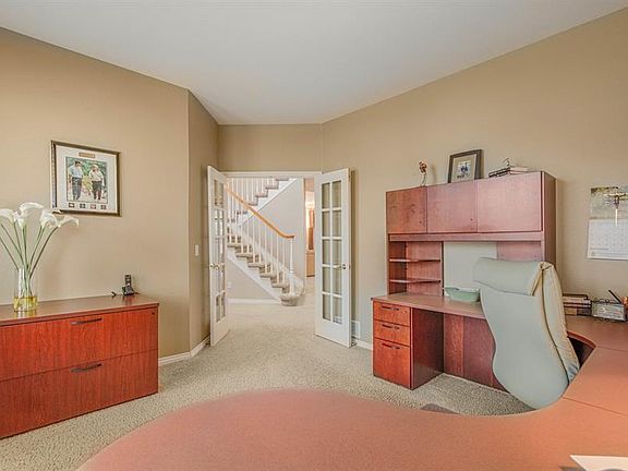 Shows like a model home. Open and bright with flowing floor plan. Large rooms and wide open spaces. Quiet neighborhood offering ease of commute. Newer carpet and paint. Kitchen features granite slab counter, double oven with microwave convection,Kitchen Aide and Bosch stainless steel appliances, brushed nickle and oak hardwood. You'll find a "spa-like" bath in master with granite tile counters and new sinks, faucets and light fixtures. All custom window coverings and double cell blinds. Water purifier for the entire home. Main level office or den ,living room and formal dining room. Three car garage. Newer clothes washer and dryer included. Lower level family room is a great place to entertain, relax and unwind with media room including big screen with projector. New roof and newly painted exterior.