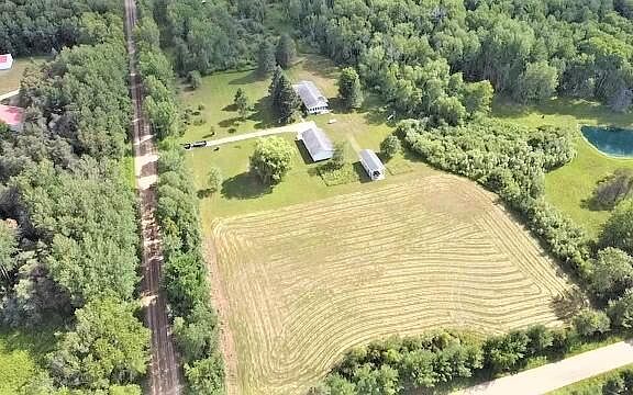 Beautiful 4 bedroom 2.5 bath, ranch on 12 gorgeous acres. 1854 sq. ft on main include 3 brs (large master w/ 1/2 bath), 2.5 baths, large kitchen, living room, and dining room, and main flr. mud/laundry room, topped off with a 240 sq. ft. 4 season room. Most of the main level was remodeled, with several walls removed, creating a nice open floor plan. Upgrades include: 2006 furnace/humidifier, 2009 H2O heater, 2017 new floors main floor, kitchen cabinets, tops, stainless range, microwave, refrig, LED lighting in many rooms, fans, 1/2 bath remodel, gravel on drive. 2020 Garage door motor, 2021 din. rm. built-ins, 2022 sump pump, 2023 new carpet on main & toilet. Basement as a large family & bedroom, along w/ high ceilings and large unfinished area. 12 Acres: approx. 2 acres mowed, 2-3 acti hayfield, rest uncut or wooded. 3 car gar, w/ large storage. Very nice covered concrete slab area for a motor home, fifth-wheel, etc. You'll also enjoy the fruit trees (apples, plum, pear). INTERESTING FACT: Property comes with mineral rights and are paid a varying sum for the gas that runs through the land (no pumps on land). Annual checks have ranged from $850-$1500. RESERVED: Bedroom TV mount, some curtains