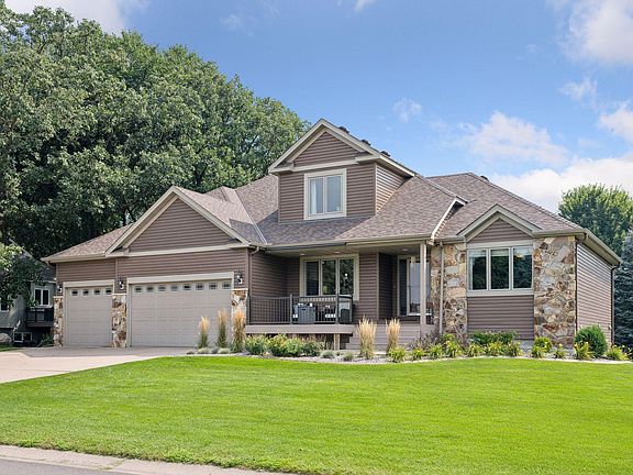 Exceptional 4 bedroom 4 bath home in the Mississippi Oaks Community. Beautifully updated throughout, basement finish, kitchen and baths, A/C/furnace, roof, hardwood floors, paint, landscaping, shed, and appliances. This impressive custom-built home has all the amenities you would expect and offers an open and spacious layout with an abundance of natural light. Attention to detail and high-end finishes throughout this home include Marvin windows, ironwood deck, maple cabinets & floors, granite countertops, SS appliances and stone fireplace. Great floor plan layout with master bedroom and laundry on the main level. Lower level is spacious with a fantastic bar area, perfect for entertaining. you'll love the backyard and huge deck, private with lots of mature trees. Don’t miss the neighborhood playground. Close to parks, lakes, rivers, trails, shopping, and dinning. Welcome Home!