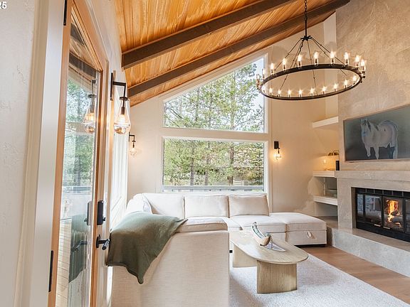 Welcome to 9 Acer—an exquisitely reimagined Sunriver retreat on a quiet cul-de-sac, offered fully furnished. This home lives like new, with a brand-new roof, lighting, fixtures, paint, flooring, and a state-of-the-art kitchen featuring premium-paneled appliances, Taj Mahal quartzite countertops, and a custom brass-and-steel hood. Wide-plank white oak floors flow throughout, anchored by two stunning floor-to-ceiling tiled fireplaces. Along with an attached two-car garage, the home offers a playroom with new wool carpet and a spacious downstairs movie room for relaxing. The vaulted living room feels airy and open, while the expansive outdoor patio is perfect for entertaining or unwinding.Come see it before it's gone.