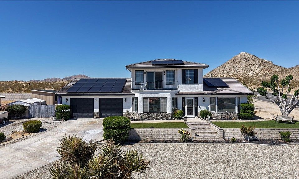 Stunning Home with Breath taking Views and POOL!! This beautiful home offers endless vistas, a spacious layout, and plenty of room for entertainment and relaxation. Featuring 4 bedrooms, 2.5 baths, and an office with French doors, this home has it all. The upstairs game room (which could easily be converted into two additional bedrooms) opens to a viewing balcony, complete with a wet bar for ultimate convenience. The kitchen is massive, and the formal dining room and breakfast bar provide ample space for gatherings. low-maintenance front yard with a stylish rock landscaped. Step outside to enjoy a spacious covered patio, perfect for outdoor dining or lounging. The block wall fencing ensures privacy, and the oversize 2-car garage offers plenty of room for storage. RV parking, unfinished small ADU