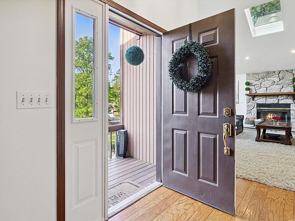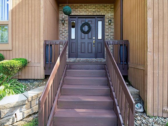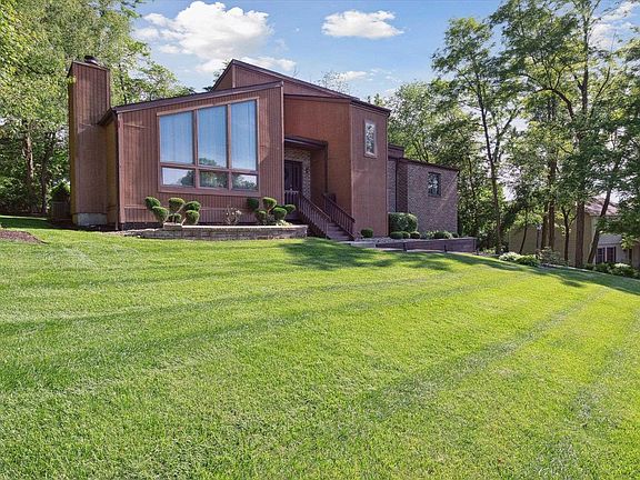 Discover a one-of-a-kind contemporary custom home perched atop a grand hill, nestled in a serene wooded setting. This residence offers a peaceful escape with a private backyard featuring a deck, hot tub, peaceful pond, and charming waterfall. The kitchen shines with beautiful cabinetry, granite countertops, and stainless steel appliances. Natural light floods the living and dining rooms through skylights, creating a warm and inviting atmosphere. Unwind in the all-season sunroom, your favorite room, with walls of windows showcasing stunning views of nature and wildlife. A spiral staircase leads to the master bedroom en suite on the second level, offering a secluded sanctuary. The den can easily be converted into a fourth bedroom if needed. Beautifully maintained both inside and out, that enhance its charm. The lower level features a finished family/rec room, a private sauna, and a third full bathroom. Additionally, a new septic pump was installed just a year ago, ensuring peace of mind for years to come. This unique home is a perfect blend of modern luxury and natural beauty. Don't miss your chance to experience it!