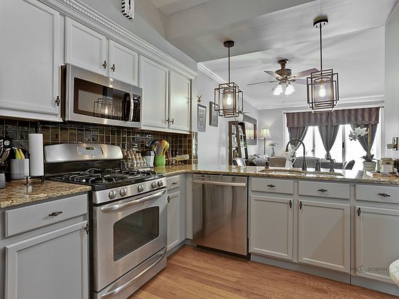 Gorgeous updates top to bottom make this home the BEST value in Bridlewood! Brand new furnace & AC, refrigerator, microwave, disposal, new carpeting and fresh paint throughout! Lovely renovated kitchen with granite counters, tile backsplash, all stainless steel appliances, a breakfast bar, and modern pendant lighting. Combined dining and living rooms featuring a wood feature wall, a recently updated gas fireplace with marble tile surround, and sliders to your private patio. Convenient under-stair storage has been updated with rare custom shelving! A half-bathroom completes the main level. Up the stairs, notice the beautiful custom wainscoting on your way to the master suite which features a vaulted ceiling with bright skylights, his & hers closets, and an ensuite bath with granite vanity and a custom tile shower/tub. An additional bedroom shares the hallway bathroom updated with granite vanity and tile shower/tub. 2nd level laundry room and attached 1-car garage. You will love this fantastic location walking distance to many stores, restaurants, Starbucks, and more! Enjoy Gurnee Mills shopping and family fun at Six Flags!