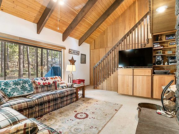The quintessential Sunriver cabin located near the heart of the Village and SHARC facility. 3 bedrooms and 2 baths with vaulted ceilings on two levels. Great room fllor plan with the large lava rock woodburing fireplace as the romantic focal point. Large deck overlooking a generous common area. Absolutely loaded with charm!!