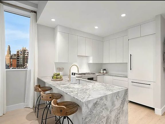 Massive 2br with 2 full baths & private outdoor space situated in idyllic Park Slope, Brooklyn. Enjoy the luxury of a boutique 9-story residence in an elevator building with easy access to the entire city. Soak in the generous natural light with floor-to-ceiling windows with multiple exposures as well as elevated ceilings. Appreciate beautiful hardwood flooring and luxury finishes throughout. This spacious 2-bedroom home is complete with a separate chef's kitchen featuring ample counter space and chic cabinetry, with luxury Bosch appliances including an oversized fridge, dishwasher, and an in-unit washer-dryer. Each bedroom features floor-to-ceiling windows, showcasing stunning sunset views of the Manhattan skyline. The luxury bathrooms features marble tilework, large sinks with a mirrored medicine cabinets, and shower tubs complete with three-level built-in niches. APPLICATION FEE OF $20 (TWENTY DOLLARS ) PER APPLICANT FOR APPLICATION PROCESSING IS REQUIRED RENTER IS REQUIRED TO PAY FIRSRT MONTH RENT AND SECURITY DEPOSIT AT LEASE SIGNING This residence comes complete with amenities including a high-end gym featuring Peloton bikes, additional oversized storage units, and a common roof deck with stunning panoramic views of Manhattan and Brooklyn. Enjoy the ease of walking to endless choices of restaurants, shops, and entertainment venues. Barclays Center is just up the street, home to countless sports and cultural events, as well as the Atlantic Avenue station which provides immediate access to Manhattan and the LIRR. Meanwhile, one block away is the R train at Union Station. Enjoy living in one of New York's most picturesque neighborhoods, with Prospect Park, Brooklyn Botanical Garden, the Brooklyn Museum, street fairs along 5th and 7th Avenues, and weekly farmer's markets at Grand Army Plaza.