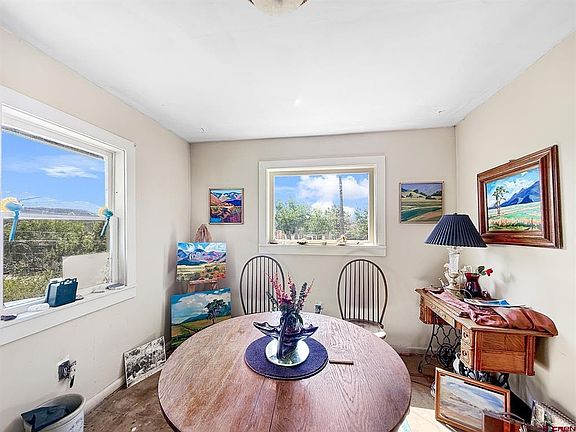 Rustic well built older five bedroom Log Home on a larger parcel in the sleepy little old west town of Crawford. Room for extra bathrooms if you want them. New roof, electric panels and service ready to be connected up and rewired, also natural gas at the lot could be installed. Very spacious, and adequate built in closets and shelves in every bedroom. Beautiful mountain and cliff views for sunrises and back lit sunsets. Easy walking distance to the nearby BLM on the edge of town. Larger than most, this property is a nice half acre in town, with several mature fruit trees, cedars, pine and elm trees. If you want, 90% of antiques will be included in sale. Stylish arches, solid bones and walk out basement with plenty of room for storage and or finishing off for more livable space. Even the attic has a nice bedroom in it. This home sits on the hillside and backs up to some really quiet neighbors.