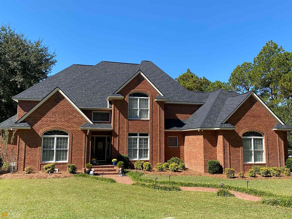 Traditional brick home on 5.4 acres. Exclusive country living. Old World Style custom front door and leaded glass transoms in dining, study and primary bedroom were commissioned by an artisan in Atlanta. The brick on this home are Wood Mould brick. meaning each brick was crafted individually in a Wood Mould and fired. Brick are much thicker and have no holes like regular brick. Home features wood floors, cathedral ceilings, extensive crown moulding, plantation shutters, screened porch, large deck and patio. Office/Study on main level can be used for fifth bedroom if needed. Free standing balcony is also one of the homes main features. Seller holds an active real estate license in the state of Georgia.