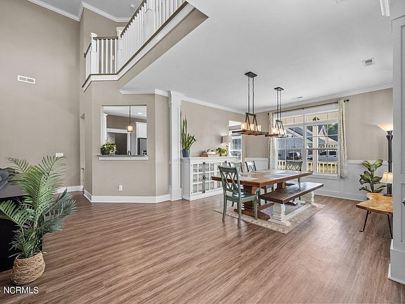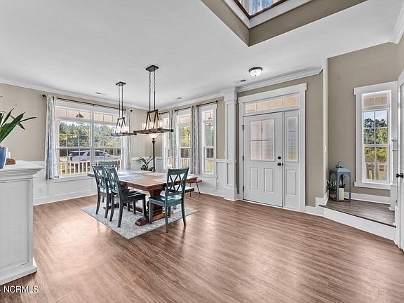 The property greets you with a wrap-around covered porch—perfect for sipping your morning coffee and soaking in the tranquil surroundings. Step inside to discover a bright, open-concept main level that invites gatherings and relaxation. The living room, featuring a soaring ceiling and cozy fireplace, flows effortlessly into the formal dining area, both full of natural light. The heart of the home is the combined eat-in kitchen and dining space, where culinary enthusiasts will enjoy granite countertops, a large center island, and stainless steel appliances, complemented by ample cabinetry and quality fixtures.