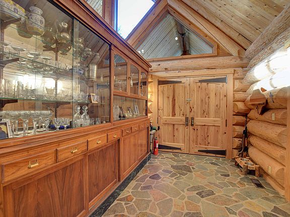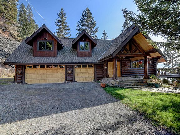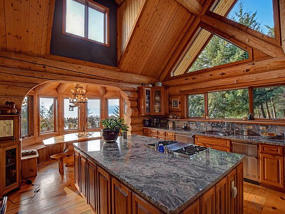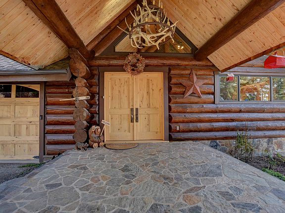 Don't miss this absolutely beautiful & massive Caribou Creek log home with breath taking unparalleled lake views. This extraordinarily designed home features an incredible double-sided, floor to ceiling stone fireplace, cathedral ceilings, spacious kitchen with a expansive center island and SS appliances, and desirable custom finishes throughout. The main level master suite will absolutely thrill you with French doors opening out to deck allowing fresh air and access to unobstructed views. Downstairs you'll find an additional 2 bedrooms, living room with spectacular rock fireplace, laundry, and bathroom. If you need more space, the loft, bonus room over the 3 bay garage/shop, and separate studio are just steps away.