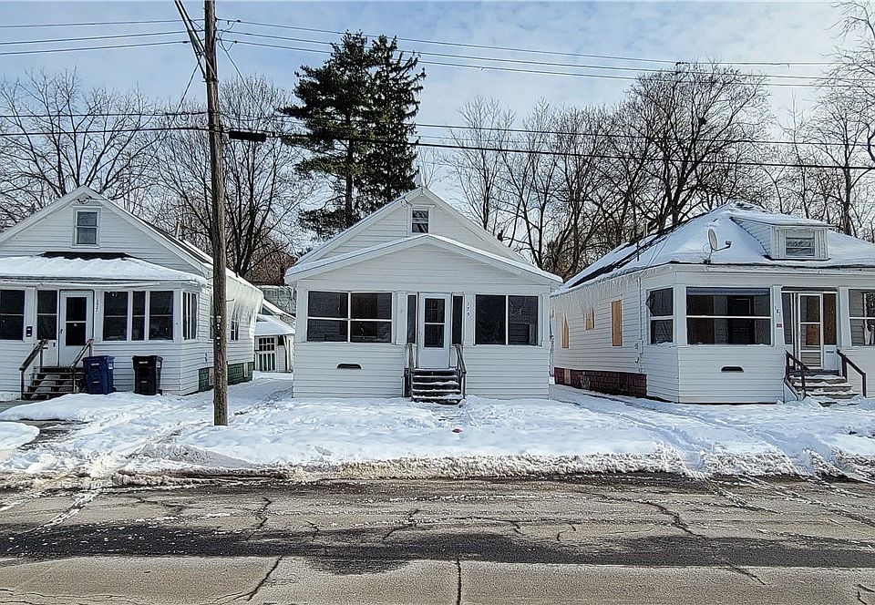 Discover the timeless charm of these three identical bungalows, lovingly referred to as the "3 Sisters." Each home features 792 sq ft of well-designed living space, including 2 bedrooms, 1 bath, a welcoming front living room, a formal dining room, and an eat-in kitchen. The homes also boast full basements for added storage and functionality. Relax and unwind on the inviting front porches, perfect for enjoying a quiet morning coffee or chatting with neighbors. Each bungalow is accompanied by its own detached garage, providing both convenience and privacy. This property offers exceptional versatility. Live in one bungalow while renting out the other two (current rental income is $1,000 per unit), potentially covering your mortgage. Alternatively, investors can maximize income by renting all three, with a combined gross monthly income of $3,000! Situated in a desirable location close to local amenities, the "3 Sisters" offer a unique blend of classic style and modern investment potential. Don’t miss out on this rare opportunity to own three bungalows in one incredible package. Schedule your tour today and envision the possibilities!