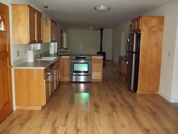 This fantastically remodeled house sits on a quiet, country 2 acre parcel in the historic town of Elkton. Hardwood floors throughout; newer, top-of-the-line stainless steel fridge and dishwasher and a Jenn-Aire range. It has two decent sized bedrooms and two bathrooms, laundry room, carport, wood stove and much more. Two minutes away from perfect fishing, swimming and boating on the Umpqua River. Elkton is becoming famous for its Community Education Center, the Butterfly Pavilion, numerous wineries and its highly praised School District. Perfect for raising your family or retiring in a small town. Thirty-five minutes of peaceful country road takes you to the ocean beaches, Cottage Grove or Roseburg. This house is ready for new long-term, non-smoking tenants, so please drive by and have a good look and if interested in receiving an application text an email address to 541-643-8628. Security deposit $1800