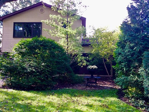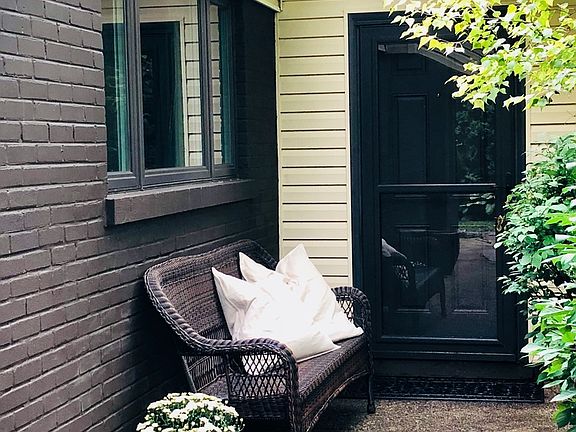 Calm, quiet, lovely home is tucked into green landscapes, yet close to conveniences. Wooded views out huge windows, sprawling lawns and privacy define this property. The interior is rustic and modern, with many updates. Warm wide plank floors, cool industrial tile, and selected materials create a calm flow from room to room. From the greatroom, to the flexible floor plan of 3 bedrooms, 2 bonus rooms and fresh updated bathrooms, you will find a place to gather, or be alone. The updated kitchen leads to large, bright rustic dining room, and beautiful slate fireplace. The laundry/mud room keeps life organized and tidy. Retreat to the screen porch for socializing, watching the kids outside, or a nap. With newer furnace, windows and remodeled kitchen and bathrooms, it's move-in ready. Close to great schools, shops and expressway. This well appointed home is unique, offering a peaceful town and country feel, with carefully designed features at a very approachable price. HOME WARRANTY INCL