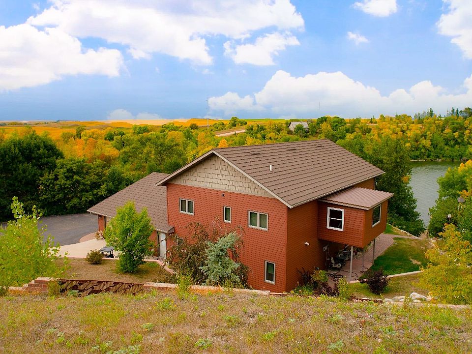 We are excited to present this GORGEOUS home located in Jamestown North Dakota, boosting the perfect amount of LUXURY, and PRIVACY, nestled quietly on Spiritwood Lake! Holding 3bedrooms, 3bathrooms, and an open concept. Double living areas in this bi-level home, with an exercise room, outdoor kitchen, and vaulted ceilings, sitting on 3.47 acres of land with so much more to offer. This home has a Beautiful large kitchen with double ovens, a gas cook top, custom cabinets and counter tops that you will absolutely love. The beautiful island and double ovens are perfect for cooking your family meals and the large pantry right off of the kitchen gives you amazing storage space! You cannot go wrong with floor heating in the attached garage as well as the entire main floor, adding in porcelain tiles. When enjoying the perfect lake view out of the large, floor to ceiling living room windows that this home offers, you will be amazed! Giving the best natural light throughout your entire home and having a total open concept coming from the front door and garage area to the kitchen and main floor living room, offering the most amazing view! Being able to host fabulous gatherings with an outdoor kitchen and so much space inside and out. With the beautiful landscape around the entire home, you can sit on your deck and enjoy the handmade water fall with your cup of coffee as the sun rises or sit at night around the fire pit and enjoy natures' sounds and peaceful evening sky. As you set out to enjoy the lake for the day the pathways are well designed and easy to use, making hauling stuff to the waterfront easy. Let's not forget the rock work and landscaping done near the lake making this view and lakeside enjoyable. You will never have to leave this beautiful home to enjoy the simple things in life! Call your favorite realtor for a private showing today!
