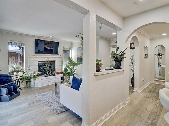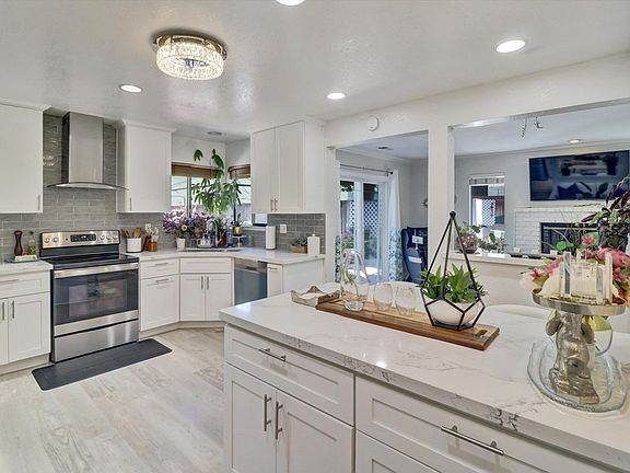 Open house Sat and Sun 1 pm to 4pm .Beautiful 2383 square feet private corner lot in Cul de Sac, located in Canyon Lakes, gated community. This luxurious 3 bedroom and a loft , 3 bath is welcomed by wildlife surroundings, community pool and tennis court. Fully upgraded vinyl flooring throughout the house. Newer interior paint, a large living and a formal dining. Fully upgraded kitchen with quartz counter tops, beautiful white cabinets, spice racks and self closing drawers, elegant backsplash, a peninsula for eat in kitchen experience with cabinets underneath, GE appliances including wine cooler. A big wood burning fireplace. Family room with recessed lights opening to a beautiful backyard with a view of the hills, small pond with water fall. This unit has loft upstairs can be used as office space and or entertainment den supporting wall-to-wall mirrored closets. 2 full bedrooms and a huge master with upgraded vanity in the bathrooms. Newer faucets with filters, water heater and air conditioning. Separate laundry upstairs. Close to highly rated schools and short distance to Central Park, the newly opened City Center, the market place including Trader Joes, Whole Foods, Target, gated community with a 24 hour guard. Hoa includes Water ,Hazard Insurance ,Exterior ,roof and more