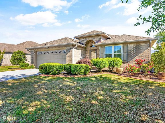 Welcome to 179 Castle Bay Drive, a charming single-story brick home nestled in the coveted community of Castle Bay Country Club. Boasting 2 bedrooms with a flex room that can easily serve as a 3rd bedroom option, 2 full bathrooms, and over 1,800 square feet of living space, this home has a lot to offer! Step inside to discover an ideal floor plan with an abundance of natural light and tons of upgrades, including luxurious granite countertops, a beautiful tiled walk-in shower, and a cozy gas log fireplace.This home also backs up to hole 17 at Castle Bay Country Club, offering serene views with lush, green, mature shrubs and trees. The roof was replaced in 2018, and new vinyl windows add to the home's energy efficiency. Additional features include an owned LP tank buried on the property, wired and set up for a whole-home generator (generator not included). Conveniently located in the heart of Hampstead within the highly desirable Topsail school district with proximity to the new bypass entrance/exit, making it easy to get into Wilmington. Castle Bay Country Club offers a variety of membership packages, including access to the 18-hole golf course, fitness center, tennis courts (now featuring pickleball!), swimming pool, Restaurant with daily specials and more.