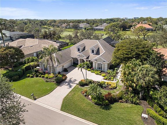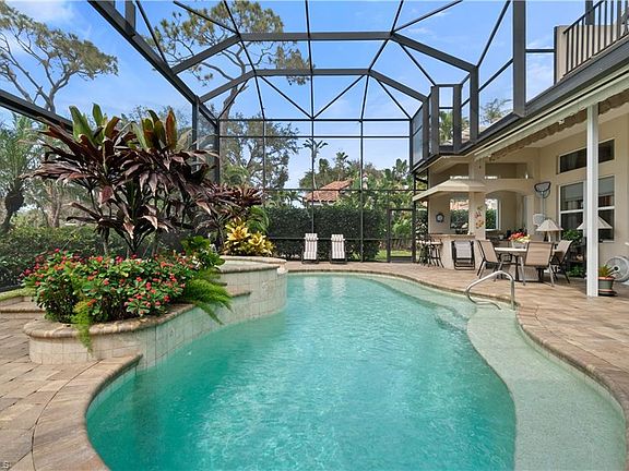 Located in the highly coveted Audubon Golf & Country Club in North Naples, this exceptional estate offers beautiful golf course views and ideal western exposure for prime sun over the pool and breathtaking sunsets. This beautiful residence offers 4,645 sq ft of luxurious living space, a new roof (2019), 3-car garage, soaring ceilings, a spacious open floor plan, & an incredible amount of storage. The main level includes a den and three private bedrooms (including the primary suite), each with its own ensuite, while the second floor offers an expansive guest suite complete with a wet bar, sundeck, and separate leisure room—ideal for entertaining family and friends. The beautiful chef’s kitchen boasts dual islands, granite countertops, custom wood cabinetry, an eat-in area, and a breakfast bar perfect for casual dining. Step outside into your own private oasis, where you'll be greeted by a spacious pool, spa, and a new picture-screen enclosure (2020), offering stunning golf course views. The outdoor space is enhanced with ample lounging areas and a summer kitchen complete with a grill, sink, bar seating, and an electric awning for added convenience. The generous primary suite offers direct access to the pool deck and a spa-like bathroom, featuring dual vanities, a large walk-in shower, and a separate jetted soaking tub, creating a tranquil retreat. Audubon’s prime location is just 5 minutes from Mercato and world-class beaches, and the community offers a gated/guarded entrance, an 18-hole championship golf course, tennis, pickleball, a Bayside boardwalk, and a newly renovated clubhouse with dining and a second beautiful poolside club and café.