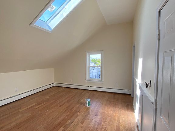 Recently updated third floor 2-bedroom unit plus additional office space. Hardwoods throughout. Updated bathroom. Eat-in kitchen with gas stove. Living room with vaulted ceiling and skylight. Off-street parking and private laundry in basement. Shared yard. Year lease. Tenant responsible for utilities. Gas heat. Employment, landlord and reference checks done.