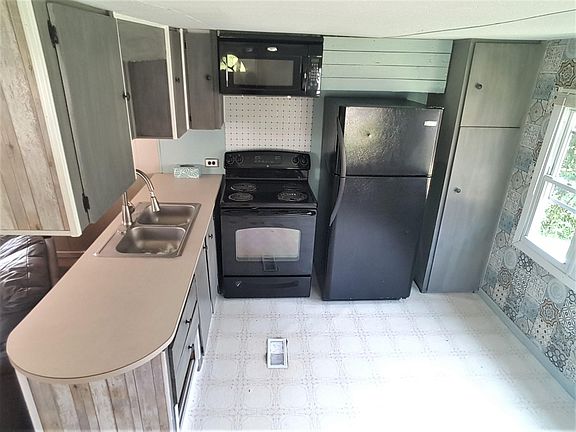 NOW WITH A RENT TO OWN OPTION! Easy to maintain, one floor living at this 2 bedroom, 1 bath trailer with a nicely sized 2 car garage. This home has all new windows, and a private back deck. All appliances included. The Morton garage is finished, with concrete floor, and drop ceiling. Come take a look!