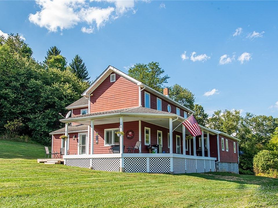 Welcome to this picturesque farmhouse on 100 acres! Still very close to shopping & amenities. You will be in awe from the beginning of the driveway up to the house. This farmhouse has been renovated over the years. Enjoy the stunning views from your wrap around front porch. Upon entering there is an extra room that would be great for a home office, pantry, etc. In the kitchen you will notice the beautiful antique chestnut floors, plenty of Amish hickory cabinetry and new appliances. This is such a welcoming open space, it's perfect for entertaining & upcoming holidays. The living room is just off the kitchen, which then wraps around to the first floor laundry room & powder room. The family room is cozy, with vaulted ceilings, this is a great addition to the main living space. Master bedroom is located on the first floor with a large walk in closet & private bath. Property is equipped with a private, stocked stream that is safe for animals to drink. Perfect for the outdoor enthusiasts.