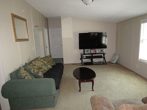 Beautiful open floor plan doublewide on permanent foundation. Large bedrooms with walk-in closets, a family room with cozy fireplace. Spacious kitchen with cook friendly island, formal dining room as well as spacious cozy family room off the kitchen. Large master bathroom with garden tub. Sits on approximately 1 acre of land and include storage building/carport. Public water is available if buyer would want to connect.