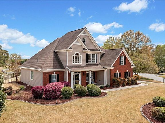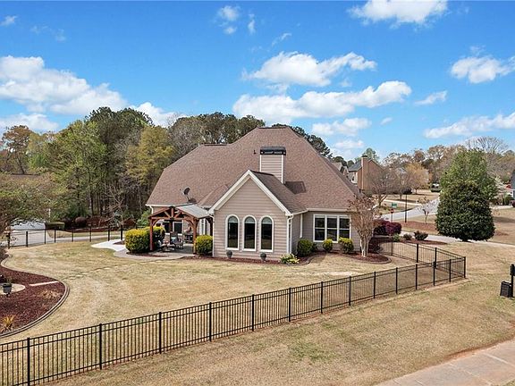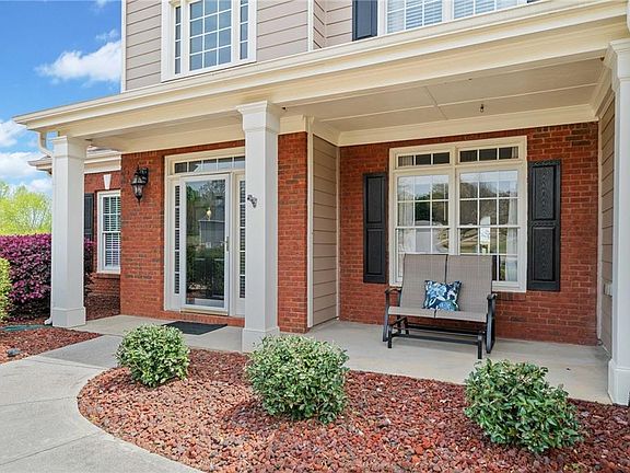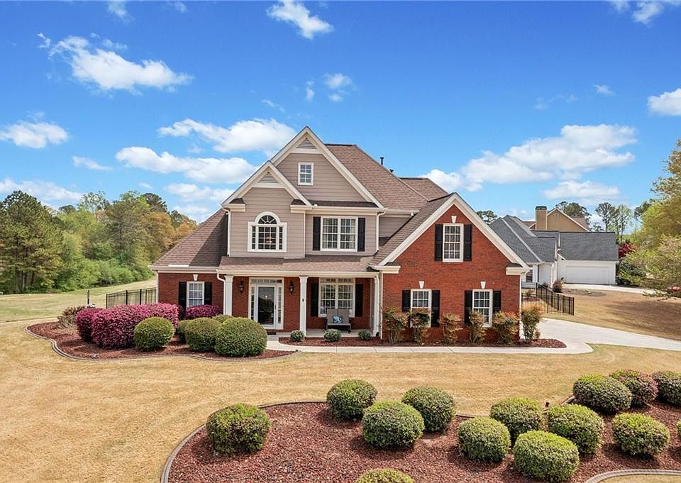 Welcome to this rare master and guest suite on the main floor plan on a premium GOLF COURSE LOT! Perfectly positioned on the 18th tee box in the prestigious Creekside Country Club, this immaculately maintained 5-bedroom, 3-bathroom home offers exceptional curb appeal with manicured landscaping, upgraded hardscaping, and breathtaking panoramic views of the course from nearly every angle. Step past the expansive, step-free front porch into a soaring two-story foyer, where a bright, open layout and neutral tones create an inviting ambiance. The formal dining room, accented with elegant chair rail trim, is perfect for entertaining, while the grand great room—anchored by a double-sided fireplace—flows seamlessly into a sun-drenched sunroom with vaulted ceilings and sweeping golf course views. The kitchen overlooks the family room and boasts 42” cabinets, solid surface countertops, stainless steel appliances, a pantry, and an eat-in area that opens directly to the stepless, walk-out backyard—a rare coveted home feature that enhances accessibility and seamless indoor-outdoor living. Outdoor entertaining is effortless under the comfortable wood gazebo with ceiling fan, perched beside the 18th fairway, offering a perfect setting for dining, backyard fun, or evening relaxation. A side-entry garage, extensive hardscaping, and a five-zone irrigation system add convenience and curb appeal. The master suite features tray ceilings, a walk-in closet, and an en-suite bath with a separate tub, shower, and double vanities. A main-level guest bedroom and full bath—positioned on the opposite side of the home—provides privacy and flexibility for guests, multi-generational living, or a dedicated office. Upstairs, three generously sized bedrooms and a full bath offer plenty of additional space. Recent updates include brand-new warranted Carrier HVAC systems, a whole-house surge protector, upgraded insulation, and new insulated garage doors—offering peace of mind and saving future homeowners thousands in replacement costs. This is one of the only homes currently for sale in Creekside Country Club offering a premium golf course lot, professionally designed landscaping, a rare master and guest on main layout, and recently updated mechanical systems—making it truly worry free move-in ready! With a combination of lifestyle, location, and long-term value, this home stands well above the rest. Don’t miss this exceptional opportunity!
