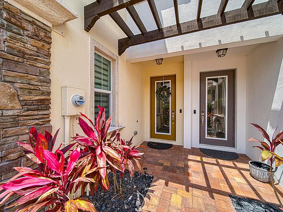 Welcome home to Binks Pointe, a gated enclave of stylish residences directly across from Wellington National Golf Club and minutes to all of the equestrian facilities. This home was just completed in 2022. As you enter, the grand glass doorway opens to reveal a staircase finished in luxury vinyl plank, framed by an eye-catching wood and iron railing, crown molding, custom window treatments, upgraded light fixtures, remote-control luxury ceiling fans, and impact windows throughout. The chef's kitchen is a centerpiece, with quartz countertops, rich wood cabinetry, and stainless LG appliance package. Upstairs you will find 3 spacious bedrooms, 2 full bathrooms, laundry room, and a loft. The primary suite boasts two custom walk-in closets and a spa-inspired bathroom with a large walk-in shower with seamless glass enclosure, and a private balcony that overlooks the peaceful greeneryperfect for morning coffee or evening relaxation. The additional bedrooms are equally inviting, with one featuring its own walk-in closet, and a versatile loft space offers extra room for work or play. The convenience of an upstairs laundry room with built-in cabinetry and a sink enhances the home's practical appeal.