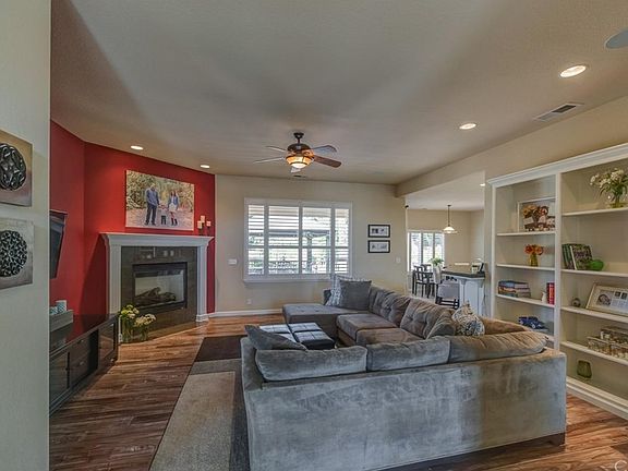 You'll love this immaculate home located in a quiet, friendly neighborhood. This 4 bedroom 3 bath home offers a split floor plan, trey ceilings, and beautiful built-ins in the great room. Owned solar provides low utility bills and includes a smart thermostat (Nest). The kitchen features granite tile counters, gas cook top, and walk in pantry. The laundry room has been beautifully redone with quartz counters, glass tile backsplash and a tube skylight to brighten the space. The master suite is spacious with a gorgeous trey ceiling. The master bath includes a jetted tub, a walk in shower, double vanity sinks, and a walk in closet. Step through the breakfast nook onto an expansive Tamko EverGrain Deck, approximately 1160 sq ft. The built in gazebo will provide hours of entertaining and the perfect spot to watch the sunset. Relax and unwind to the rhythm of the bubbling brook waterfall and stream, or walk the paths to the fruit trees. The large lot has been professionally designed for beautiful low maintenance, but leaves plenty of room for your dreams. The oversized garage has ample built in cabinetry by Table Mountain Cabinets plus a golf cart door and parking, perfect for the golf course just down the road. Don't miss out on this home of your dreams!