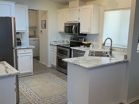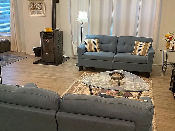 J1992 Country Estate 3 Bdrm / 2 Bath. 1404 Sq Ft Beautifully updated home #179 in coveted 55+ LakeRidge of Eugene. This home offers a light open floor plan with vaulted ceilings, kitchen with newer stainless appliances, freshly painted cabinets and pantry, new countertops and luxury vinyl tile flooring throughout. A recent upgrade is a new Comfort Bikt Pellet Stove for cozy warmth on cool evenings! Master bedroom with large on suite bath and two walk in closets. Recently painted interior and exterior of home. Spacious 9 X 12 finished storage shed. New Rheem water heater, New roof in 2019, outside Heat Pump in 2017. Lovely landscaped back yard includes painted privacy fence and covered patio, two blooming Dogwood trees, garden boxes, Rhododendrums, Lilacs, Azaleas,Roses. New monthly space rent $730.33 which includes your water, sewer, garbage, and cable tv. LakeRidge of Eugene is on a lake with walking paths, is pet friendly, offers RV storage, large clubhouse, exercise room, and heated pool. Buyer approval from office required. This home is ready for you! Asking $189,000. For sale by owner – Agent friendly! Shown by appointment – to view call 707-321-4802.