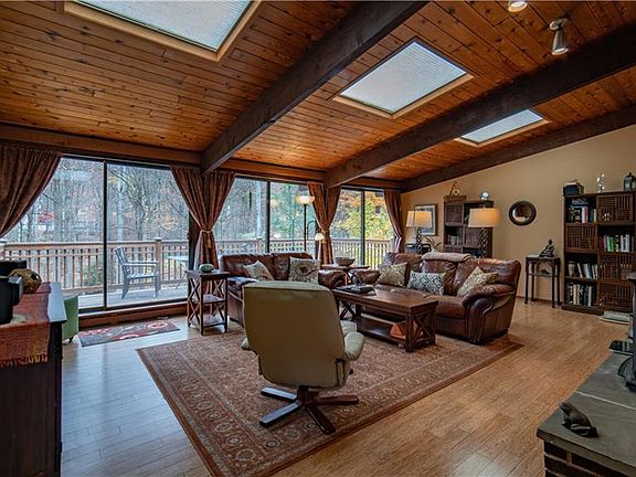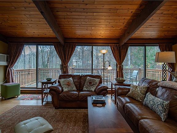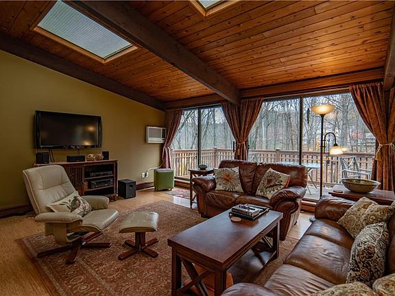 Take a journey to nature on Southbury's scenic Dublin Hill Road to this unique deck house. Technically it is a Raised Ranch but it is not your average Raised Ranch This home is full of natural elements starting with the vaulted tongue and groove cedar ceilings throughout, bamboo floors in the Living Room and cherry cabinets and granite countertops in the beautifully updated kitchen. There is a Harman pellet stove in the Living Room that helps to heat the house efficiently. The Dining Room is open to the Kitchen and off of that is a separate room currently used as a Home Office with two walls of glass overlooking the beautiful grounds. The entire backside of the home is glass, both floor to ceiling windows and sliding glass doors, so that you can enjoy the natural surroundings from inside and from the wrap-around deck outside. Completing the main level is a massive Master Bedroom with additional space that could be used as a nursery or sitting area and a newly renovated Master Bath. You will find a large back yard with the crystal clear Stiles brook that runs through the rear of the property. There is also a swimming pool that overlooks the back yard and is fully fenced for privacy and security with direct access from the lower level. This is where you will find the Family Room, a bonus room currently used as an Exercise Room, two Bedrooms and a Full Bath, laundry and access to the garage. You will love every detail when you experience this special home. Agent related.