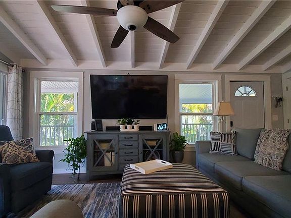 This is the vacation home of your dreams! Pristine, totally remodeled and updated Fort Myers beach home. This beach bungalow is located in the desirable south end of the island close to the white sandy beaches in Fort Myers and Bonita Springs. Private wooded yard located in quiet sought after neighborhood of McPhie Park. Open concept living with lots of Volume! Kitchen boasts shaker white cabinets with granite counters and island; Custom built in seating and new stainless appliances. Bathrooms are updated with new cabinets and all new ceramic tile. New luxury vinyl flooring throughout. NEW AC! METAL ROOF!! Very large private front porch with special screening to keep the no see ums out! IMPACT RESISTANT WINDOWS AND DOORS and much more.