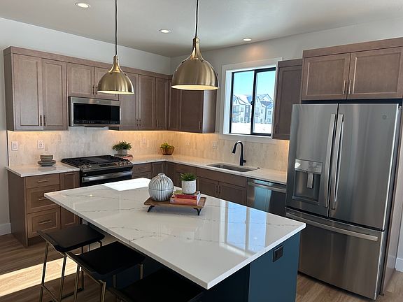 This is our newest "Prairie" elevation! Beautiful, cozy home with large picture windows, and open great room/kitchen. The kitchen boasts a dramatic center island, tons of cabinets, quartz counters and big pantry. Lovely family room with beautiful linear flush mount electric fireplace with floating mantle. The master bedroom includes a large ensuite with big walk-in shower and walk-in closet. Second bedroom and full guest bath, plus nice laundry/mud room and 2 car garage.