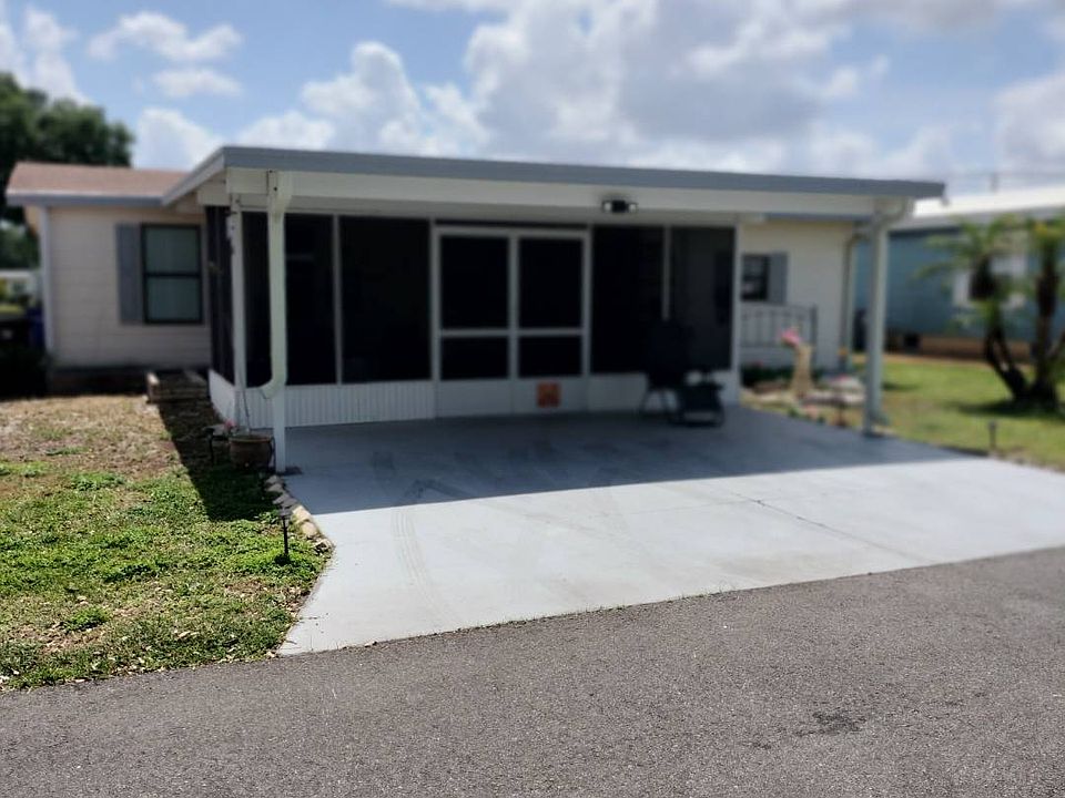 This manufactured home is located on the golf course in the ever-popular 55+ Swiss Golf & Tennis gated community in sunny Central Florida. It has 1232 sq ft with a unique floor plan that you don't want to miss. This includes an extra-large living room, two spacious bedrooms, two large bathrooms, and a dedicated office space. It also has 408 sq ft of additional living space to relax and/or entertain family and friends with a screened patio in front (+228 sq ft) and an enclosed Florida room (+180 sq ft) in the back overlooking the golf course. The office right off the kitchen is perfect for any work-from-home opportunities. The owner has maintained all aspects of the home. The roof was replaced 9 years ago and was recently inspected. The A/C was also recently tuned up. The monthly lot rent is $633.38. Swiss Golf & Tennis is a wonderful place to live. It is located on Lake Henry to put down roots (even part-time). It boasts a friendly atmosphere where neighbors look out for each other. There is also an onsite restaurant/pub, two clubhouses, two pools, an 18-hole executive golf course, pickle ball/tennis courts, shuffleboard, horseshoe, billiards, and lake access, to name a few. In addition, there are plenty of activities including dances, cards, golf cart parades, bingo, trips, golf leagues, crafts, etc. It is conveniently located just outside Winter Haven. This is a great location because it is within 45-60 min from Orlando International, shopping, beaches, and theme parks. Call listing agent today for more information and/or to schedule either an on-site or virtual tour. Don't let this one get away.