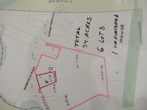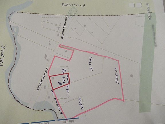 This property consist of 33.0066 acres of land that was previously sub-dived into 6 build able lots,One lot has a 1444 sq ft unfinished raised ranch style home with potential of another 672 sq ft finished lower level for a total living area of over 2100 sq ft.Nestled on a 1.44 acre lot,The other lots consit of 2.20 acres.1.43 acres,15.05 acres,1.52 acres,and 12.37 acres.This property is close to the town lines of Palmer and Brimfield Ma.Easy highway access located on Route 20 Boston Rd and Fenton Rd.