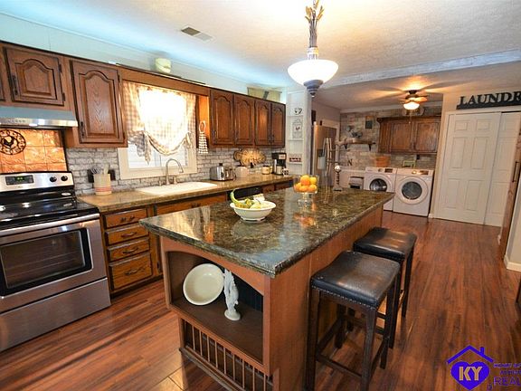 Looking for a place in the country but yet only approx 10 miles to city of Leitchfield then you must see this charming ranch nestled on approx 9.33 acres. This property has all the amenities one could ask for. Home has been completely remodeled. Features include 5 bedroom, 3 baths, formal dining, large eat-in kitchen with stained concrete countertops & island, closed in porch, storm shelter, mud room that allows you to deer hunt while keeping warm. The outside offers everything one could ask for especially privacy, great garden area, chicken coo, green house, smoke house, covered area for outdoor dining & entertaining. Additional 2.13 acres with water/electric available. A must see all this property has to offer.