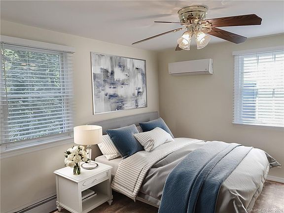Wonderful in-town living with New Canaan train, restaurants, movies, parks, and library only a short scenic walk away! And only a 10 minute train ride to Stamford; 10 minute drive to Darien or Norwalk. Move right in to this 3 bedroom condo with spacious and updated kitchen featuring granite countertops, stainless appliances (Bosch DW!), range, microwave, refrigerator w freezer, and ice maker. Plus plenty of cabinet space. Both bathrooms have recent updates. New thermal windows throughout (w the exception of picture window). Wood floors throughout (except for tiled kitchen); Newer roof, Recently painted exterior. Wonderful gel-fueled fireplace, can easily be moved from room to room! Provides nice warmth with no heat loss since no chimney! Mini -split air conditioning; Garage w dryer; plus washing machine hook-up. Floored attic, great for plenty of storage! Additional parking on driveway. Lots of open space! Great for strolls and pets! Come enjoy all the Town of New Canaan has to offer!