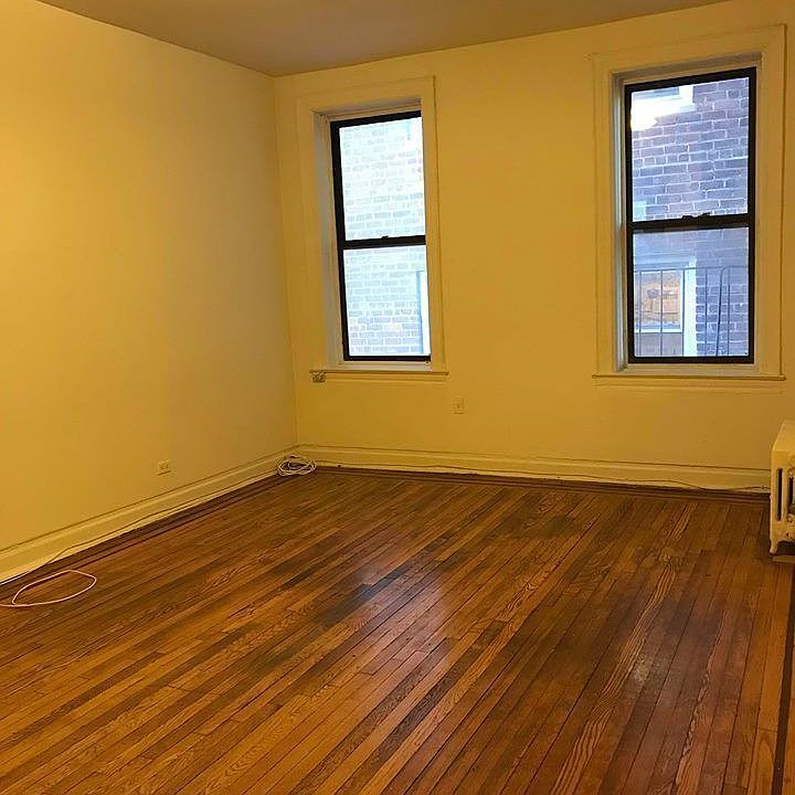 rent stabilized building 2nd floor walk up studio space with separate kitchen 2 closets windows every room hardwood floors, freshly painted big windows, deep closets heat/water is included. cats allowed. super on site