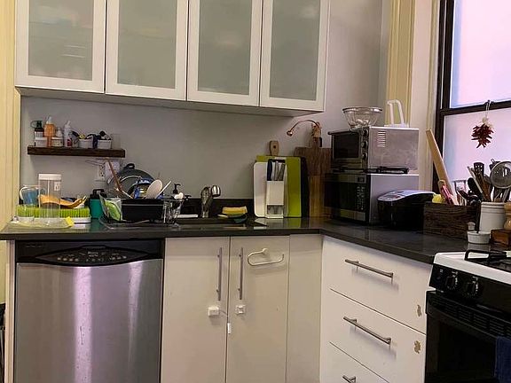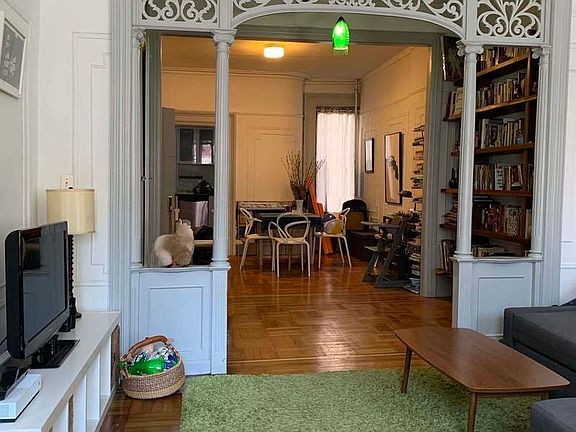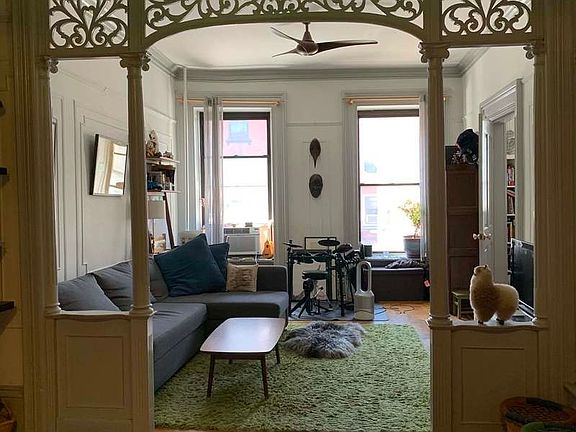 A pristine walk-up floor-through pre-war two-bedroom apartment located on Grand Street between Bedford and Driggs Avenues, in the heart of Williamsburg, Brooklyn. The four-story building houses a retail space on the first floor along residential units on the other three floors. FURNISHED/UNFURNISHED. Available for a 8 month sublet. UNIT DETAILS: The main entrance opens to the dining room that flows into a roomy south living area overlooking Grand Street. Next to the living room is a small bedroom/office space (that has a separate entrance). The spacious unit has 11-foot-high ceilings along with built-in storage closets in the main space and small bedroom. Towards the back of the apartment (north side) is the recently remodeled kitchen (replete with a dishwasher and washer/dryer unit) adjoined to the main bedroom and bathroom. Original details include horsehair wall mouldings, a carved lattice, Corinthian columns, clawfoot bath, and parquet hardwood floors. 10 windows throughout the space provide lots of natural light. Pet friendly. NEIGHBORHOOD: A vibrant variety of restaurants, bars, coffee shops, grocery stores, hardware stores, and shopping boutiques are all within walking distance. The L and JMZ lines are equidistant from the front door, about a 10-minute walk to either as well as the ferry. The B62 bus stop is around the corner on Bedford Avenue and the Q59 runs on Grand Street.