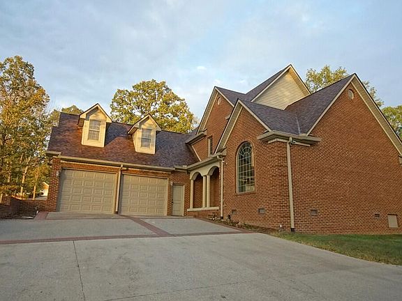One-owner brick home on 3 acres in VII Oaks. Custom built by Randal Nations. Primary bedroom on first level. 4 bedrooms, 3 1/2 baths. Great room with hardwood floors. Eat-in kitchen. All appliances convey. Freshly painted and new carpet make this house move-in condition. 2-car attached garage, plus another 2-car detached garage with finished living space above that has its own HVAC. Security cameras make living here a plus. Back-up newer generator adds to the security of always having electricity. Partially fenced yard.