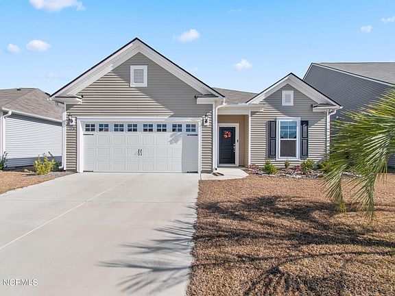 This home is a masterpiece of modern living. You'll be captivated by its curb appeal and inviting presence. The open concept living area is flooded with natural light, creating a welcoming atmosphere for gatherings and everyday living. Situated conveniently close to the amenities center, it's only a short stroll to the pool, community outdoor fire pit, or grabbing your mail with ease. What truly sets this property apart is its waterfront location. Your back porch area provides a front-row seat to nature's beauty complete with a screened in porch. Enjoy ducks sunbathing, marvel at cranes swooping by, and witness the water glistening against the breathtaking orange sunsets. For dining and entertainment, run around the corner to experience world-famous Calabash Seafood on the waterfront in downtown and also enjoy boutique shopping. Golf enthusiasts will appreciate the proximity to many local championship golf courses. Enjoy the pickleball courts and keep sunbathing top of mind with a short drive to Cherry Grove, North Myrtle, or Sunset Beach, NC. The primary suite is a true retreat, featuring a fully tiled, low-entry shower with a convenient bench, boasting a large ensuite linen closet and a double vanity sink. Enjoy an extra-large walk-in closet and view the water right from your bed. With a thoughtfully designed split floor plan, your guests will appreciate the privacy. Both guest rooms come equipped with large closets, and the separate guest bath and linen closet. Storage is a top priority in this home, with numerous large closets throughout. The kitchen is a chef's delight, featuring stainless steel appliances, tall 36'' cabinets, and beautiful granite countertops. The open kitchen design includes a large bar top for entertaining and a combination eat-in kitchen area, all with a stunning view of the water. Here everyday will feel like a vacation in your own backyard parad