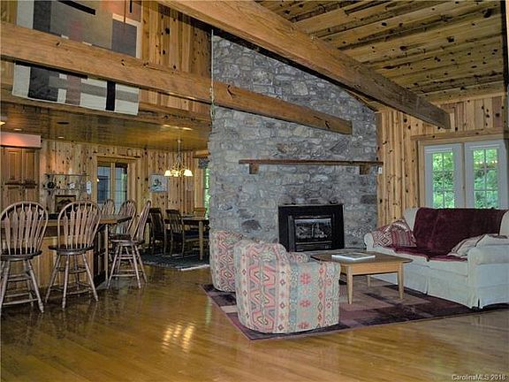 Older log home located in the Beaverdam area of Canton. A one acre lot situated on the edge of 60 acre family track. The location of the lot offers privacy with great pasture and mountain views. The house was renovated in the early 2000's were new windows and doors were added. Exterior walls were framed and insulated to add to energy efficiency of home. Exterior of home has recently been stained and painted. Open floor plan includes living, kitchen and dining with large rock fireplace that has been converted to gas logs. Loft area has been used for office area but could be used for play area for children. Bonus room off kitchen could be converted to main living area laundry, office or media room. All furnishing in house, except items marked, will convey with home. This home is located close to I-40 and 15 to 20 minutes from Asheville and Waynesville. I don't see this one lasting long.