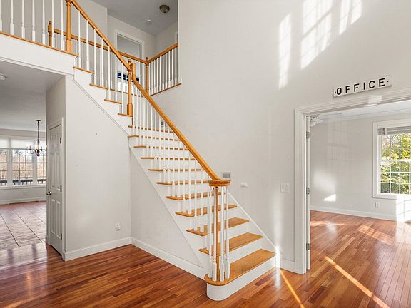 Discover the epitome of luxurious living from this Colonial nestled on 1.84 acres within a private Williston neighborhood. Spanning three levels, the home welcomes you with a grand 2-story foyer, leading to a spacious chef's kitchen adorned with custom Canadian cherry cabinets and a sizable center island. The living room boasts a cozy gas fireplace, complemented by French Doors plus you'll find two offices and a formal dining room on this main level. Upstairs, find 4 bedrooms plus a bonus room, with the primary bedroom suite featuring a walk-in closet and a 5-piece en-suite bath. The 2nd floor laundry adds practicality to the layout. The finished walkout basement is an entertainer's dream, housing a spacious rec room and ample storage. Relax on the large multi-level back deck with westerly views, offering serenity and privacy. A 3-car garage and paved circular driveway ensure plenty of parking and storage options. Recent upgrades include a newer heating system and a brand new roof in 2022. Located just minutes from Tafts Corners for shopping, restaurants, and other amenities or hop on nearby I-89 for a short 15-minute commute to Burlington.