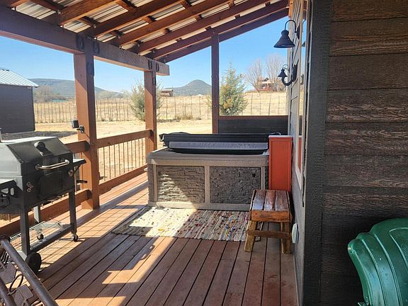 Are you looking for a mountain retreat? This is the perfect spot for to get away from the hustle and bustle of city life. This property is fit to start with animal tight fencing, a separate fenced 20x40 dog run, fenced garden with raised beds, mature landscape, 6 covered parking spaces, 3 shipping containers for storage, a hobby shop, and ¾ wrap around porch with jacuzzi. That's just the outside! The spacious home with high ceilings features an open concept kitchen dining room, lofted living room with office space and guest bedroom. The master bedroom features a roomy bathroom equipped with a clawfoot tub, dual vanity sinks, and extra-large walk-in shower. In the kitchen we have a breakfast bar top, abundant cabinet space and expansive countertops. This is a must see!