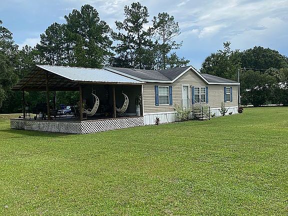 2.5 +/- acres in a quiet, peaceful area. Home is a 3BR/2BA featuring split floorplan & a large covered porch. Home will come partially furnished. On the property you will also find a 12x24 shed & a 10x16 covered storage area, complete with a game cleaning station & available water hookup.