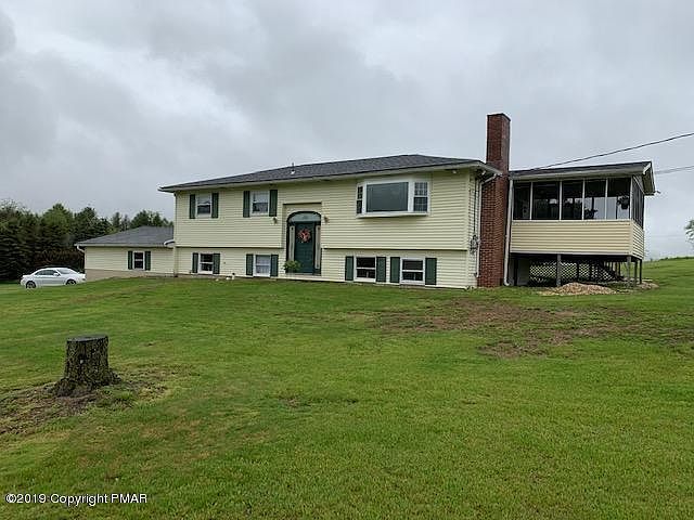LOOKING FOR PEACE AND TRANQUILITY & SCENIC VIEWS? This 3BR, 1.5 BA Bi-level nestled on 2.67 scenic acres in a MUST SEE! Remodeled by the sellers during their ownership showcases; spacious rooms, hardwood floors, ornamental fireplace in living room with bay window to enjoy the views! Upgraded Cherry cabinetry in the kitchen with counter tops and appliances. Walk out onto the enclosed side porch from the dining area to relax and enjoy the scenic views. Finished lower level features family room, laundry, extra room for workshop or could be converted to 4th BR. Rear patio, perfect for grilling, entertaining or just relaxing while enjoying the mountain views. Central air installed in 2018, 2 car attached garage with extended driveway. Covered shed/barn, for a man cave or can be converted as