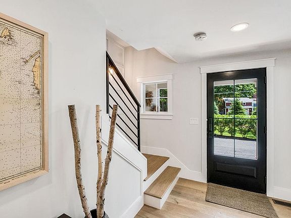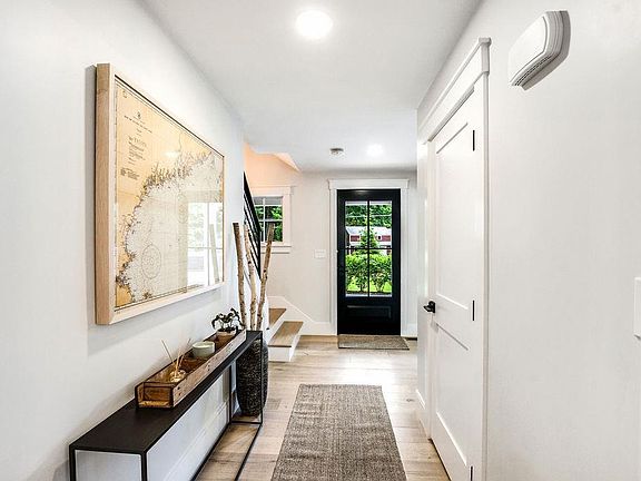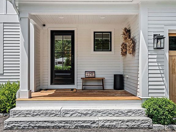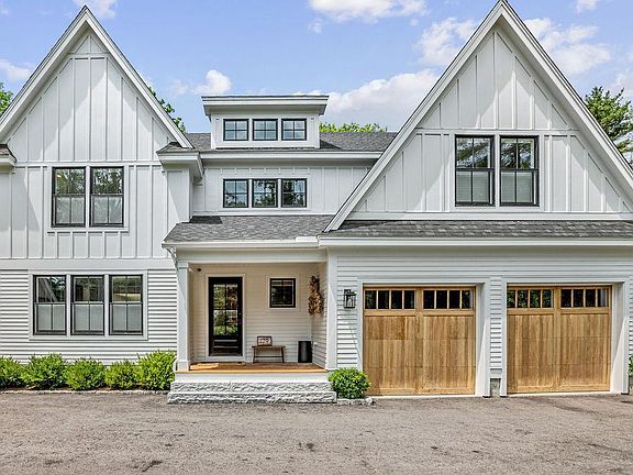 Nestled on 4 acres, surrounded by conservation land and offering ultimate privacy, this designer modern farmhouse is a must see. Crafted in 2020 many upgrades have been added since, including the oversized island to complement the fully equipped chef's kitchen. Top of the line appliances include double dishwashers and wine and beverage fridges in the island. The open floor plan flows seamlessly from the kitchen to a large dining room, as well as the great room and living room, both equipped with fireplaces and the latest video/audio technology. Also on the main level: a large mudroom with storage closet and powder room, directly accessed from the garage, as well as a stylish office tucked away from the bustle of the open living spaces. On the upper level are 3 generously sized bedrooms and shared bath, laundry room, plus a gorgeous master suite, complete with 2 walk-in closets and a luxurious ensuite bath with free standing soaking tub and 2 vanities. Floors are French oak throughout and complement the warm, modern feel, as does the iron railing which spans up to the third floor. The stunning third floor showcases a gym/recreational area. The sprawling backyard offers a wrap-around deck and inside-out gas fireplace for year round enjoyment. The home is situated to take in views from every room, the great room being no exception, with large windows and Andersen folding outswing doors framing the landscape to take advantage of the outside-in aesthetic year round.