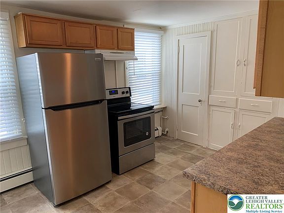 Welcoming high ceilings and lots of room in this single family home walking distance to everything downtown Emmaus has to offer. Freshly painted, refinished wide plank wood floors, spacious eat in kitchen, dining and living rooms, 1st floor study and half bath. 2nd floor has 2 large bedrooms and a full bathroom. 3rd floor can be used as a family room, 3rd bedroom or storage. Full basement for storage, rear concrete patio and on and off street parking. Tenant is responsible for electric, oil hot water baseboard heat, water, sewer and refuse. Landlord is responsible for lawn care and snow removal. Owner is a Licensed PA Real Estate Broker Lic#RM424670.