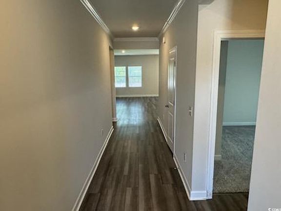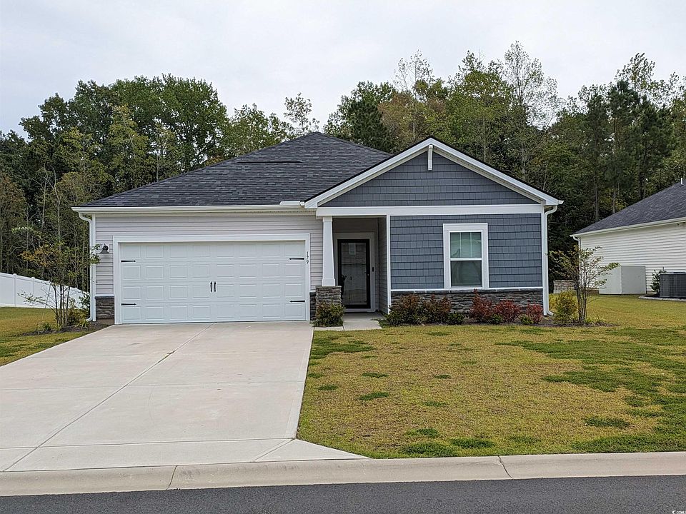 All the standard features of Meritage including Granite counters and Island, Crown Molding, LVP flooring, tile and carpet plus washer, dryer, side-by-side fridge, Tiled Backsplash, Water closet in Primary bath, 42" cabs, smooth ceilings, 2 inch blinds and sprayed attic insulation plus Fiberglas Privacy fence and ceiling fans in all bedrooms! Home backs up to woods! Buchanon floorplan (in docs). Priced below all builder specs and to-be-built builder homes! Short drive to Vereen Gardens and Cherry Grove Beach! Square footage is approximate and not guaranteed. Buyer responsible for verification.