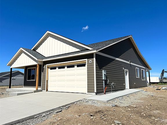 New construction home in Highland Meadows by Alpine Home Builders. Price includes FULL LANDSCAPE PACKAGE with underground sprinklers, sod, decorative rock, and two boulevard trees. Single level, open floor plan with kitchen island and corner pantry. Enjoy your outdoor space with large, covered front and back patios. Master bathroom has private toilet room, tile shower and double vanity. Granite countertops, black stainless appliances, real wood alder trim, and air conditioning are just a few of the upgraded finishes! Home is under construction with estimated completion of August 2024. Interior photos are of different home with similar finishes, for finish reference only. To schedule a showing please call/text Valerie Blanchette at 406-885-3537 or your real estate professional today.